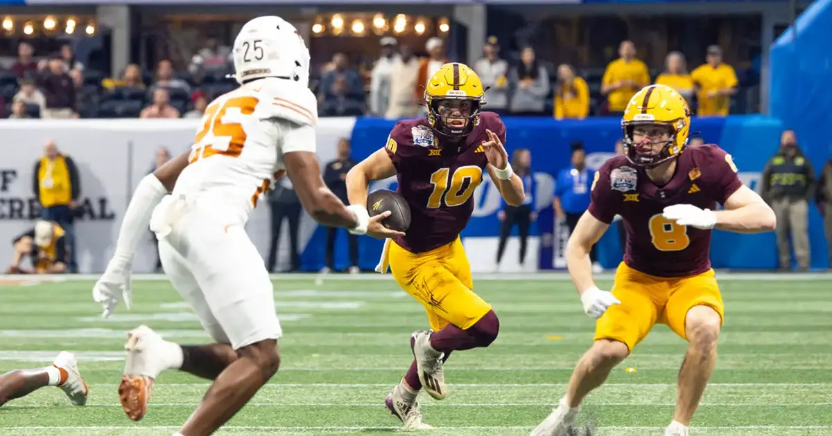 ASU was ‘this close’ to taking down Texas in the Peach Bowl behind Leavitt and RB Cam Skattebo, Skattebo is off to the NFL. However, the Sun Devils are first in the B12 and second in the nation in returning production from 2024.