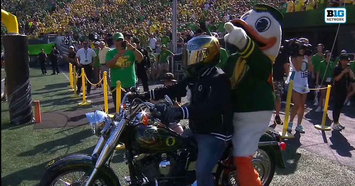 Gotta have the tradition of the Harley and the Duck! (Screenshot from B1G Network Video)