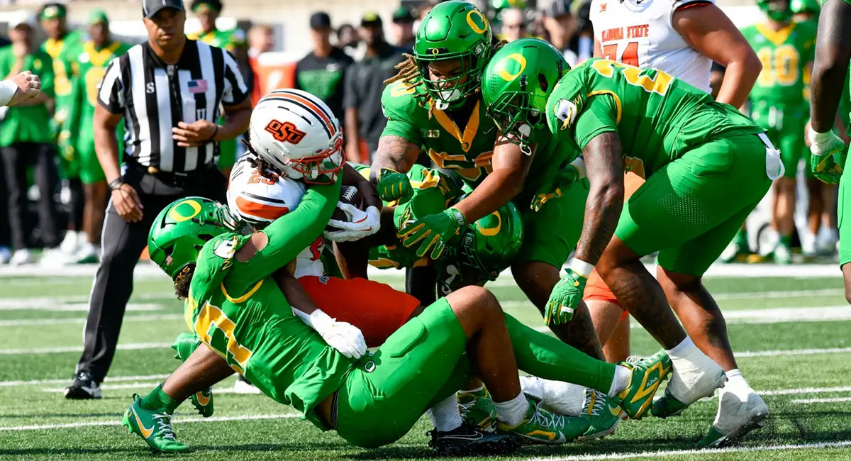 Oregon had 31 players record a tackle against Oklahoma State and when they swarm the ball like this, it’s believable.