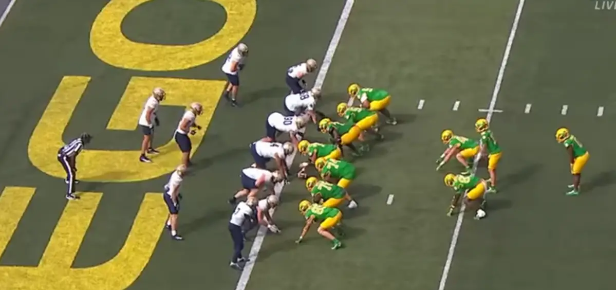What was surprising was seeing Jayden Limar as the second back on the field, and the first to score for the Ducks. He had three carries for 20 yards and a touchdown. Limar didn’t even register on most people’s depth charts in the two deep, let alone being the second back on the field. Most fans were expecting transfer Makhi Hughes to be one of the feature backs, but he only had one carry for the Ducks on the day.