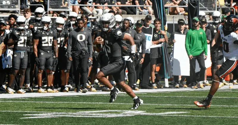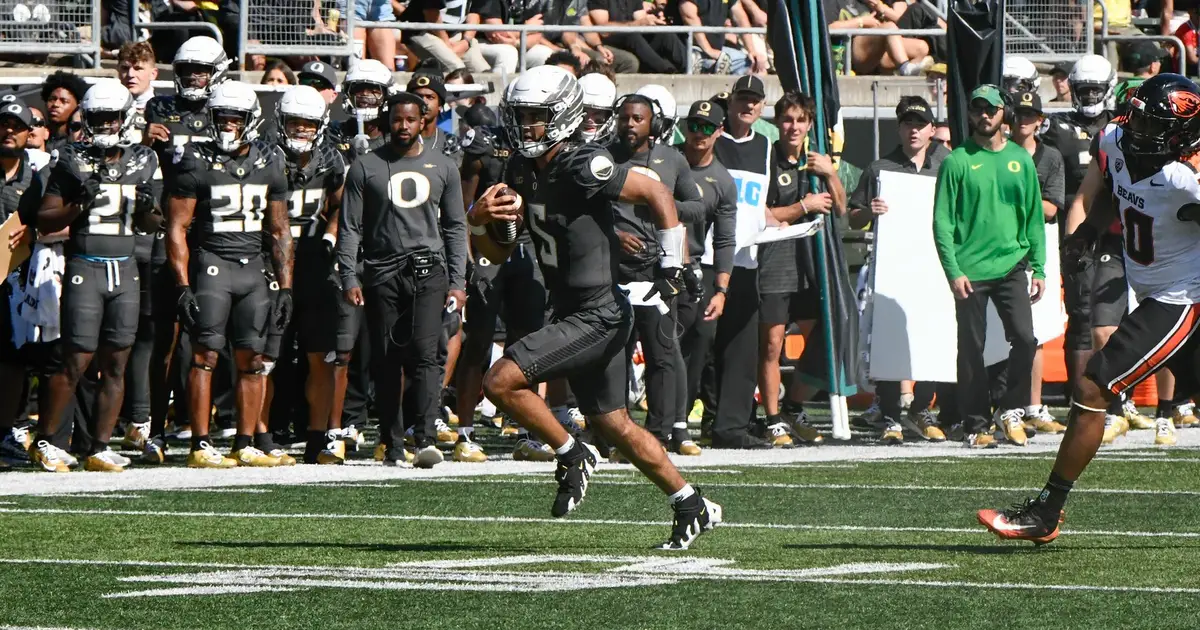 Against a talent-deficient Oregon State team, Oregon had some hiccups on offense. It was clear from the outset that Offensive Coordinator Will Stein knew he could take the top off the Oregon State defense, and had Dante Moore take shots downfield early and often. One resulted in a touchdown on the first drive to Dakorian Moore. Oregon certainly has the receivers and quarterback to stretch the field vertically this year, though it does come with its risks in that deep shots are low percentage throws and incomplete passes can become wasted downs.