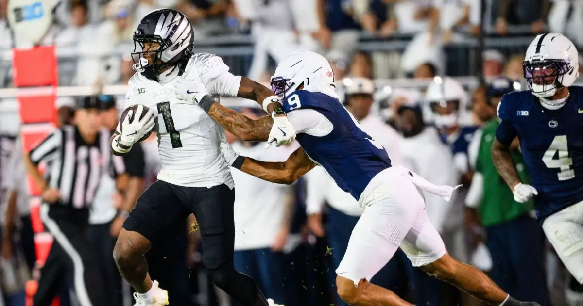 Dakorien Moore looks to become Oregon’s most heralded receiver ever. (Photo by FishDuck Football Pictures)