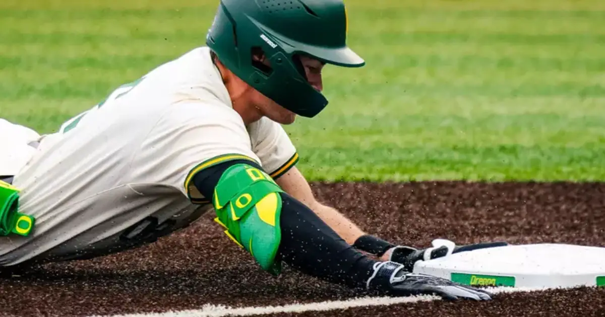 Jack Brooks has taken a huge step up in the outfield, and is a jet engine on the base path. (Photo by David Hammel and Courtesy of Oregon Athletics)