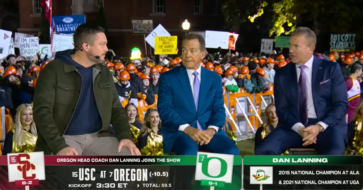 Did Dan Lanning know what he taking on with the travel in the Big-10? (Screenshot from ESPN GameDay Video)